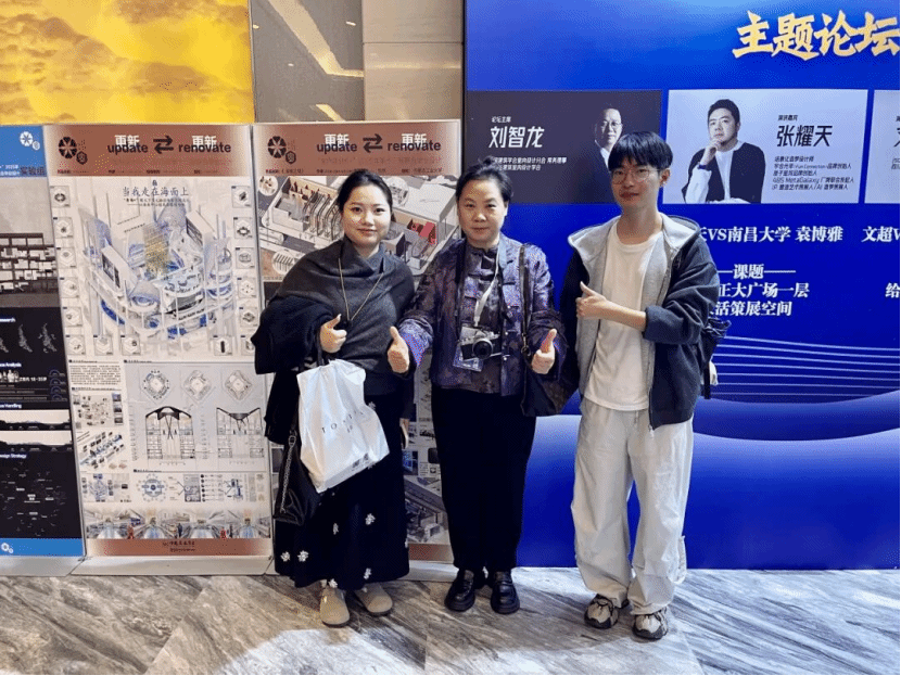 颁奖典礼上,中国建筑学会室内设计分会第五届理事会理事长薛光弼、名誉副理事长吴昊等行业权威专家为一等奖获奖团队颁奖,我院孙锦老师、肖雨鑫、王昱程作为天津美术学院代表登台领奖,见证这一荣耀时刻。此次获奖不仅是对三位同学专业能力的高度认可,更是我院环境与建筑艺术学院教学成果的生动体现 —— 学院始终坚持“产学研”融合育人理念,依托优质师资力量与行业资源,鼓励学生扎根现实需求、大胆创新实践,在各类顶级赛事中不断锤炼本领、展现风采。