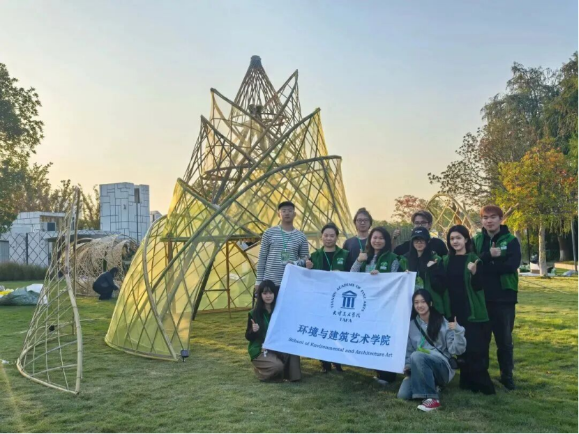 2025“心境空间 构筑和谐”空间艺术构造展在浙江金华建筑艺术公园开幕,由中国美术家协会环境设计艺术委员会等主办,系国内该领域顶级平台,首次落地南方且拓展至城市公共空间。天津美术学院环境与建筑艺术学院团队(鲁睿统筹、孙锦及张旭指导)作品《虚竹之境》,在全国 56 校 58 组作品中获“匠心构筑作品”,融合竹元素与数字技术。活动获媒体报道,展学院教学实力,诠释育人理念与成效。