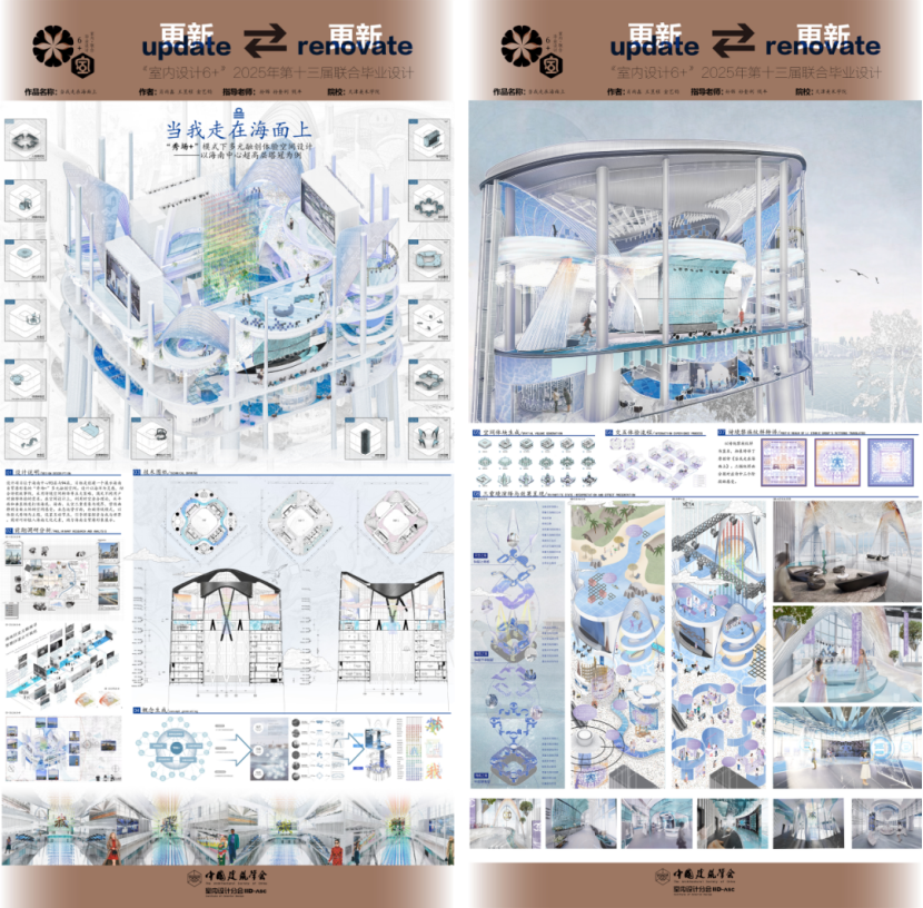 5月30日,天津美术学院环境与建筑艺术学院在中国建筑学会室内设计分会主办的“室内设计 6+”第十三届联合毕业设计(华北组)答辩中获佳绩。本次毕设以“更新・更新”为主题、海南中心塔冠设计为真题,华北组5校12支队伍参赛。在此次联合毕设中我院学子再创佳绩,“当我走在海面上”——时空叠合视角下“秀场+”多元融创空间设计小组获一等奖,项目融入海南在地文化与科技元素,获专家好评,既检验学生实战能力,也搭建高校设计教育交流桥梁。