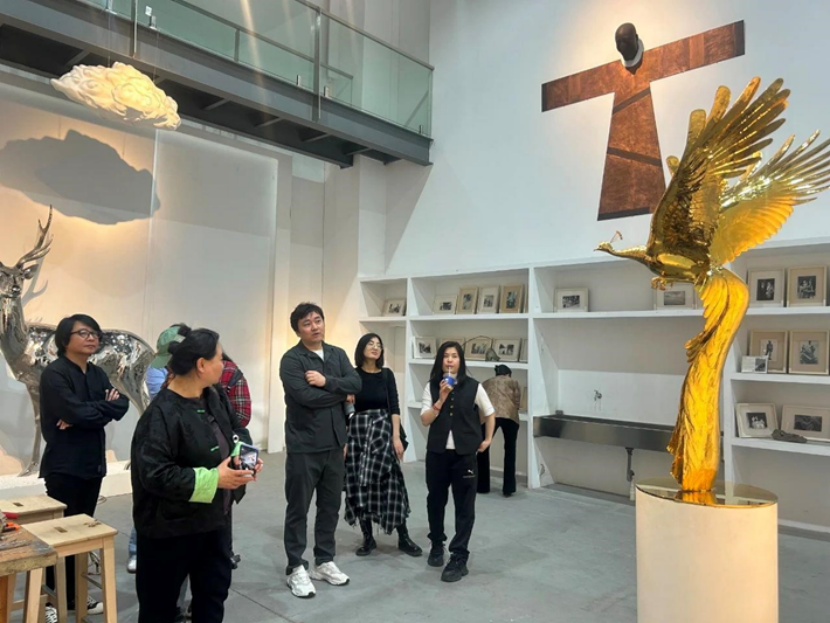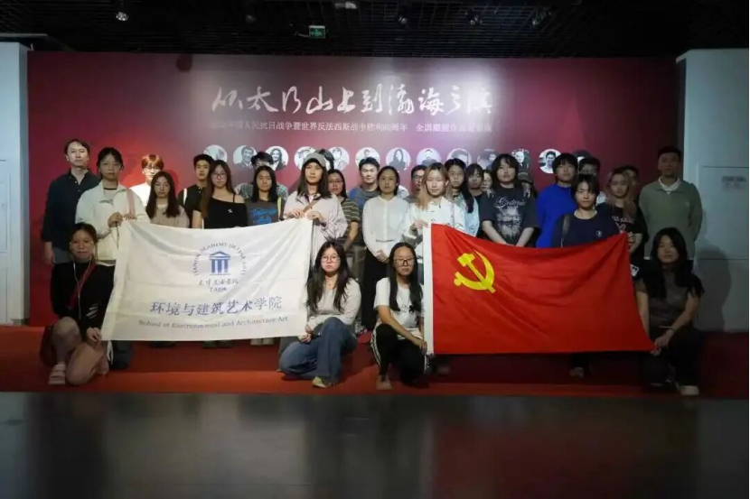 2025年9月18日(纪念抗战胜利80周年之际),天津美术学院环境与建筑艺术学院党总支书记刘峥等 3 位教授带队赴空港文化中心,参观“从太行山上到渤海之滨”全国雕塑作品邀请展。展览以雕塑再现抗战历程,展中华民族抵抗精神。教授们讲解作品背景与理念,活动兼具艺术浸润与思政教育意义,激励学子创优质作品、助力文艺事业。