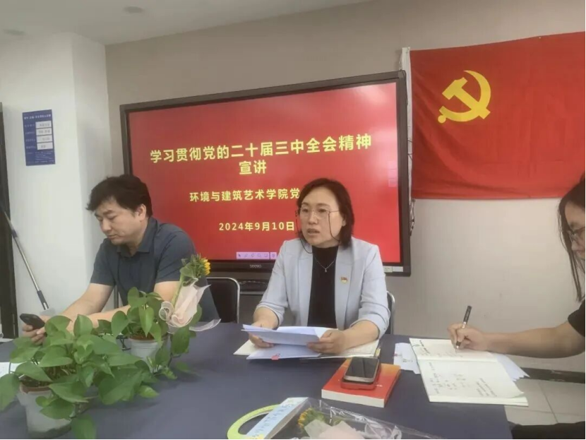 9月10日,环境与建筑艺术学院召开党的二十届三中全会精神宣讲会,学院领导班子及全体教职工参会,旨在落实立德树人任务、推进新学期工作。党总支书记刘峥阐释全会精神、总结上半年工作,结合“十五五”规划部署下半年教学科研党建重点;副院长鲁睿具体部署教学科研工作。教师交流后表决心,学院未来将健全立德树人机制,推动事业高质量发展。