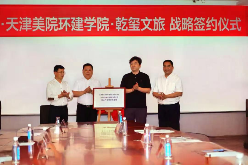 天津美术学院环境与建筑艺术学院与台州市文化旅游投资发展有限公司、台州市乾玺文旅发展有限公司在台州举行战略合作签约仪式。三方按“强强联合、优势互补”原则,构建产学研融合平台,重点推进基地共建、古村落保护、非遗文创开发等合作,还为实践基地揭牌。旨在以党建引领突破合作边界,借“艺术+科技+文旅” 模式,助力台州文旅高质量发展与文化遗产保护。