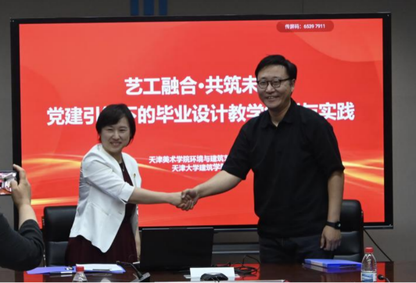 6月11日,我院与天津大学建筑学院在天纬路校区联合举办 “艺工融合・共筑未来”学习交流活动。双方围绕党建共建与跨学科人才培养互动,举行党建共建签约仪式,确立“组织联建、资源联享、人才联育”机制;毕业生分享设计作品,教师研讨毕业设计管控等议题,还共同参观天美毕业展及美术馆。活动搭建“艺术 + 工科”交流平台,探索“党建引领 - 专业联动 - 人才共育”协同发展新模式。