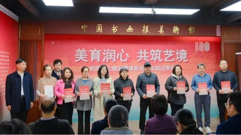 2025年11月11日上午,为迎天津美术学院办学120周年校庆,环境与建筑艺术学院联合多部门在崇德美术馆举办“美育润心,共筑艺境”校园文化建设暨课程思政实践成果展。展览展出99件实体创作、23件视频作品及55组成果,呈现实践育人成效。嘉宾经学生导览体验艺术与思政融合魅力,学院未来将深化美育、拓展育人路径。