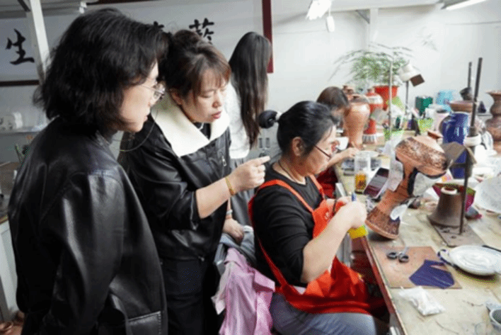学院党总支党员教师团队在座谈中畅所欲言,一致表示将以党建为引领,深化产教融合与校地共建,依托学院党组织资源建立长期非遗实习实践党建共建基地,让党员教师带头走进工坊、团员学生走出课堂,告别纸上谈兵,在工坊车间的真实实践中掌握传统工艺精髓、培养创新设计思维。学院党总支将充分发挥跨学科融合优势,把非遗传承纳入数字化教学体系,着力培养懂设计、精制作、擅营销的复合型非遗人才,从设计创新、工艺升级、品牌打造等多方面,全方位赋能地方非遗传统产业转型升级。
