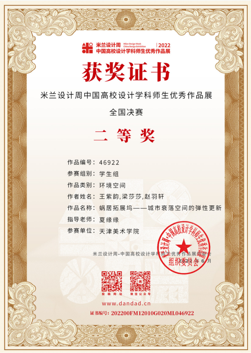 2018级王紫韵、梁沙沙、赵羽轩团队的设计作品《蜗居拓展坞--城市衰落空间的弹性更新》方案,凭借其对香港蜗居状况和居民的人文关怀,荣获米兰设计周中国高校设计学科师生优秀作品展全国二等奖。