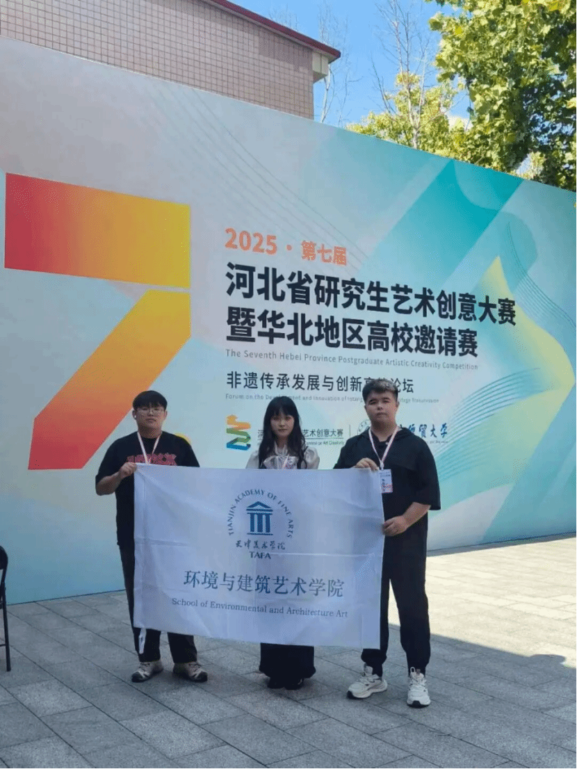 大赛围绕“艺智赋能 融合共生”主题,经过层层筛选与评审,最终有来自十余所高校的37件作品脱颖而出,晋级决赛。其中,我院研究生张晗、郑凯迪、赵佳倩,团队在孙锦老师的悉心指导下,其设计作品《水脉滋文韵——城、园、庭的水韵叙事》凭借鲜明的文化内涵与创新的设计思路突出重围,获环境设计类二等奖。该作品以“水”为核心线索,深度挖掘华北地区城市水系与传统园林、庭院空间的文化关联,将现代生态设计理念与传统“理水”智慧结合,通过数字化建模呈现“城水相依、园水相融、庭水相伴”的立体叙事,既呼应了“融合共生”的赛事主题,也展现了我院学子对地域文化的深度思考。