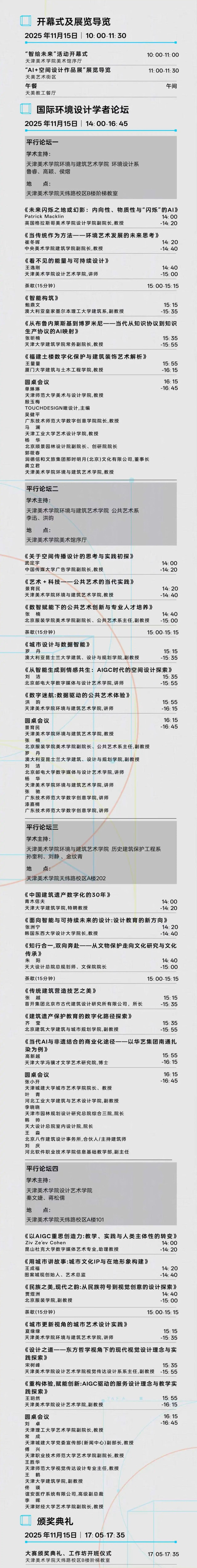 天津美术学院“智绘未来——国际环境设计学者论坛暨 AI+空间设计大赛”将于 11 月 15 日正式开幕。本次学术活动由天津美术学院主办、天津美术学院环境与建筑艺术学院等单位承办,并联合国内外 20 余所艺术与设计高校共同发起。