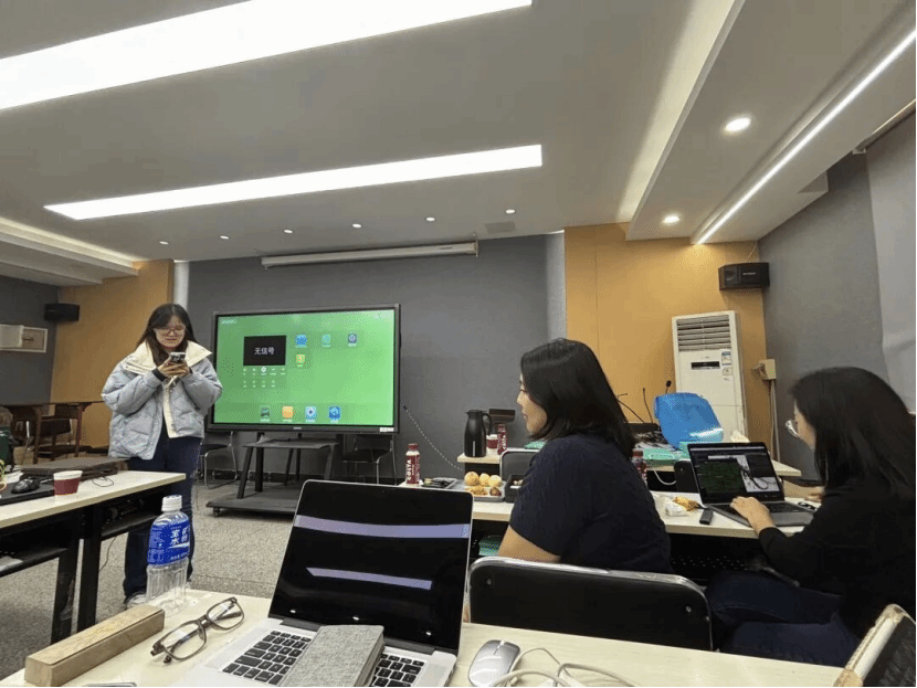 在同学们动手尝试代码的环节,冯小敏老师深入各组,帮助同学们理解项目程序,探讨实际操作中的问题,提出宝贵的视频生成建议。同学们围绕“神兽觉醒”的情节设计、NFC触发逻辑等具体问题踊跃提问,冯老师一一回应,课堂在轻松而专注的探讨中持续升温。