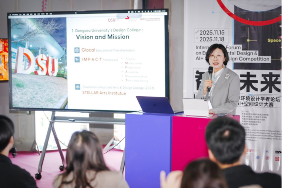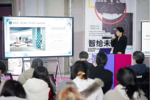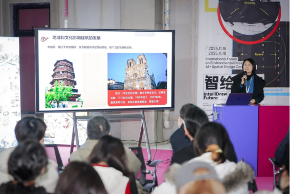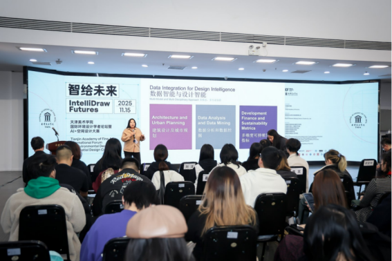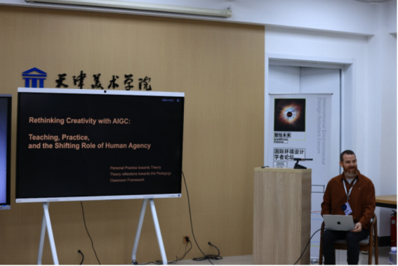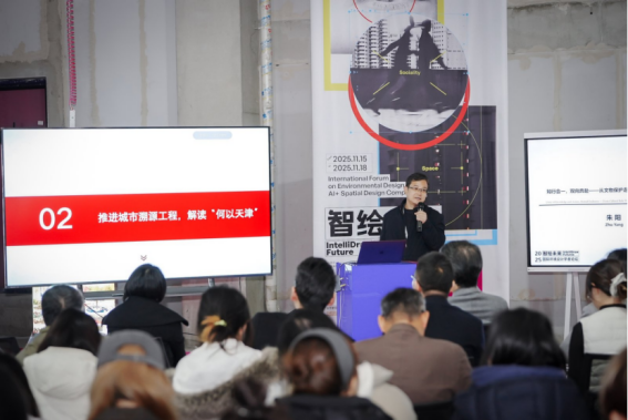 天津美术学院环境与建筑艺术学院副院长鲁睿教授作为主持人致开场辞,指出 “人工智能正在重塑空间设计的逻辑与方法,东方文脉的再生为创新提供了独特源泉”。他强调 “智绘未来” 是天美构建未来设计人才共同体的战略平台,搭建了链接东西方智慧、融合文化叙事与技术创新的对话机制,彰显 "科技赋能文化、文化引领科技" 理念。