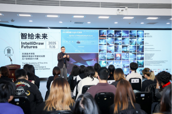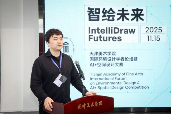 2025 年 11 月 15 日,由天津美术学院主办、联合国内外 20 余所知名艺术设计院校共同发起的 "智绘未来 —— 国际环境设计学者论坛暨 AI + 空间设计大赛" 在天津美术学院天纬路校区与天美艺术街区隆重启幕。来自英国格拉斯哥美术学院、澳大利亚皇家墨尔本理工大学、澳大利亚昆士兰大学、韩国东西大学、中央美术学院、天津大学、中国传媒大学、广东技术师范大学等国内外高校知名学者、设计师与业界精英云集本次学术盛会,百余名师生代表现场参与,共同探讨 AI 时代环境与空间设计的最新趋势与未来方向,见证智能时代环境设计教育的范式变革。