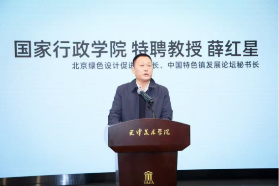 英国格拉斯哥美术学院设计学院副院长 Patrick Macklin 教授立足国际视野,指出 “AI 时代的创造力重建,AI 不应替代想象力,而应拓展想象力”,强调技术必须服务于文化表达与公共价值。润德信和文旅集团那时明月(北京)文化有限公司郭莜春董事长从产业实践出发,认为 “AI + 场景营造” 将成为未来文旅产业新增长点,“设计方案必须走向落地,成为真正提升生活品质的场景生产力”。中央美术学院建筑学院副院长崔冬晖教授聚焦设计教育,提出 “构建全国美院 AI 教育共同体” 倡议,主张建立 “开放共享 — 协同创新” 机制,共同探索 AI 支撑下的新型设计教育模式。北京绿色设计促进会会长、中国特色镇发展论坛秘书长、国家行政学院薛红星教授从国家战略高度指出绿色设计是新质生产力,是未来设计发展的源头动力,主张 “东方文脉 ×AI× 生态智慧” 将成为面向世界的中国创新模式,并表示将全力支持天美在创新人才培养、产教融合与文化科技协同中的前沿探索。