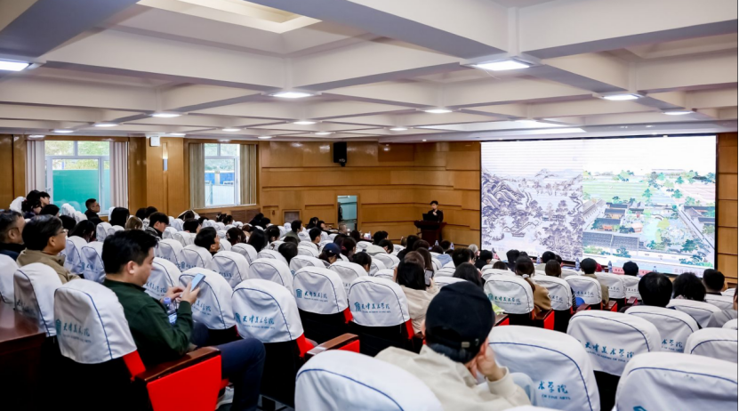 赵川(河北科技大学艺术学院环境设计系主任)以《叙事场域中的图式与意匠共生——再鉴明刊<帝鉴图说>插图中的理水之法》,讲座中以明代万历元年潘允端刊本《帝鉴图说》所营建的二维化叙事性场景中水元素为研究对象,在搜集和整理书中插图史料基础上,以图像类比、分析、考据为手段,解析叙事图像与造景设计的关联,归纳图中可见之水、可喻之水和可塑之水营建方法,还原传统空间场域营建中的理水之法与治水之思,厘定超脱于画外的水资源开发与利用的经验,增补直接史料缺失下间接图像史料的研究方法与路径,助力当代环境设计本土化语言建构的活态化传承与良性发展。