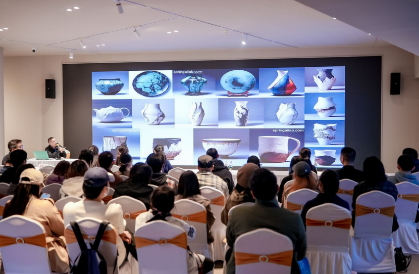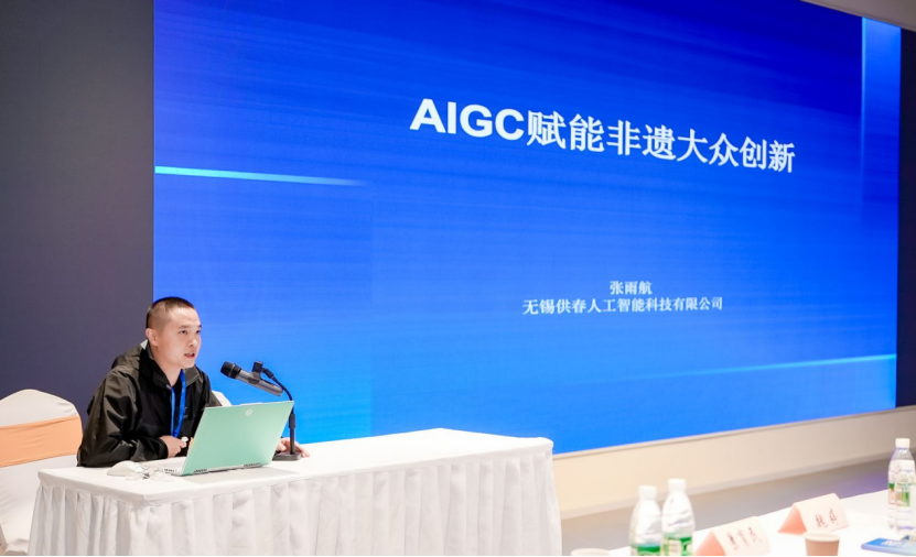 张雨航(供春人工智能创始人)以《AIGC赋能非遗大众创新》为题,讲述了AIGC时代,非遗是历史经典和文化传承,也可以是无限想象和科技创新。AI使更多人成为工艺美术的“设计者”,释放科技的创意。越是AI时代,传统笔纸越是重要;越是科技进步,非遗的文化越弥足珍贵;越是智能生成,人的想象力和创意越成为核心竞争。