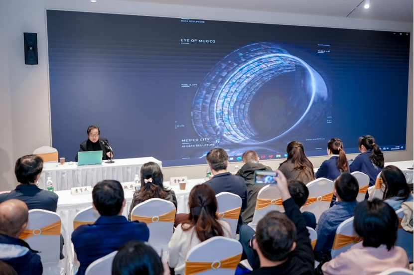 景育民(中国城市雕塑家协会副主席)以《公共艺术进入AI时代》为题,讲述了公共艺术(public art)作为舶来文化,在中国经历了被接受、去实践、再认识的历程,已经进入到跨领域、跨学科、跨媒介的深度发展阶段。随着科学技术的不断衍进,AI作为一种全新的人工智能媒介,对公共艺术的创作和实践发挥着革命性的促进作用。当下,公共艺术已经逐步走进AI时代,对当代公共艺术的发展将产生重要的推动价值与深远意义。