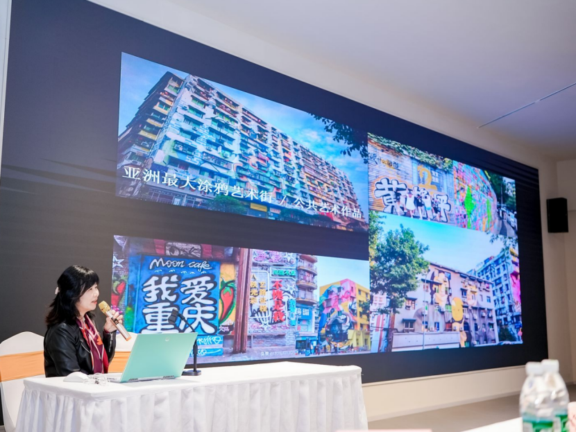 魏婷(四川美术学院公共艺术学院副院长)以《重塑城市活力的公共空间艺术》为题,以山水之城——重庆为载体,以艺术介入城市公共空间为研究对象,以城市美学为理论基础,选取两个具有地域特征的山水空间形态和艺术实践案例,通过回溯重庆城市历史,解析当代城市空间艺术新媒介、新场景,讨论公共艺术的场景化和公共空间的艺术化,呈现艺术介入城市空间的多重价值,试图构建当下重庆城市建设的人文图景。